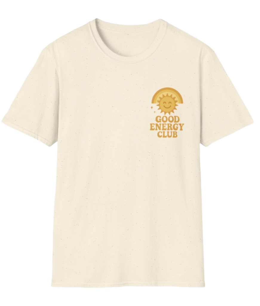 When I first slipped on the Good Energy Club tee, I thought, This feels like summer in fabric form. The bright golden sun beaming above retro text gives off this playful, sun-kissed charm that’s hard to resist.